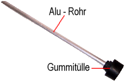 habe. Es besteht aus einer Gummitülle und einem ca. 300 mm langen, aufgeschobenem Aluminiumrohr mit 10 mm Durchmesser, welches an der Spitze wie eine Kanüle abgesägt ist. Die