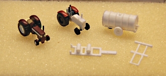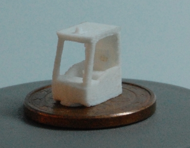 Hier die Testdrucke der Kabine für zB Radlader und Bagger und des neuen Treckerchassis mit filigraner Kabine - So kann man auf dem anmodellierten Sitzplatz sogar einen Preiserling plazieren.