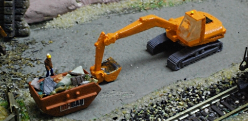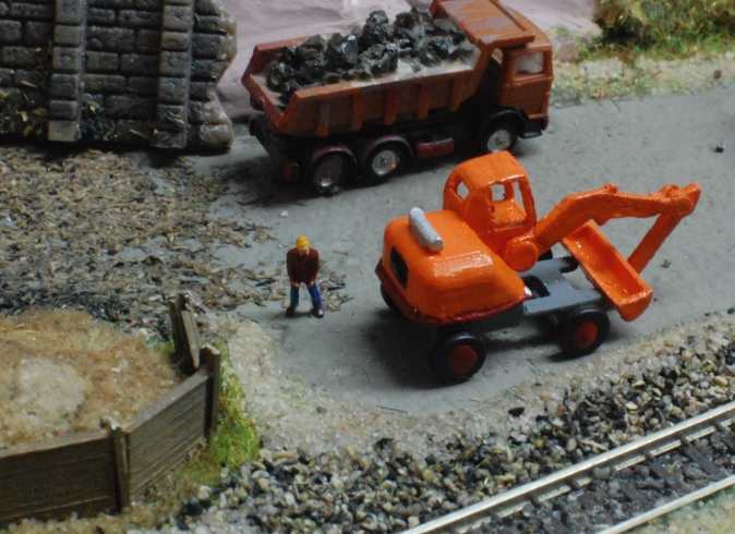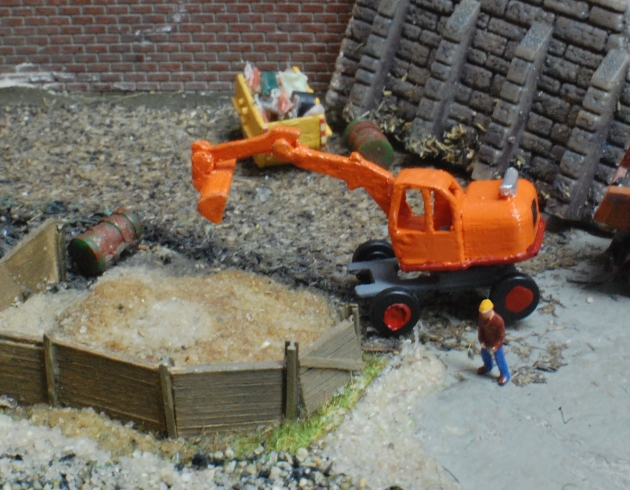 Ein ganz spezielles Modell ist dieser Entwurf, auf den mich ein Kollege gebracht hat. Es handelt sich um die maßstäbliche Umsetzung eines Radbaggers aus den 50er/60er Jahren, der hervorragend in Epoche 3 eingesetzt werden kann.
