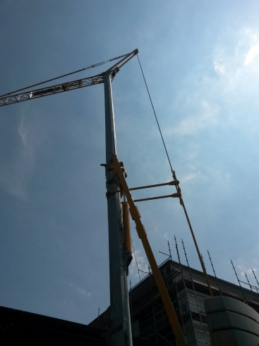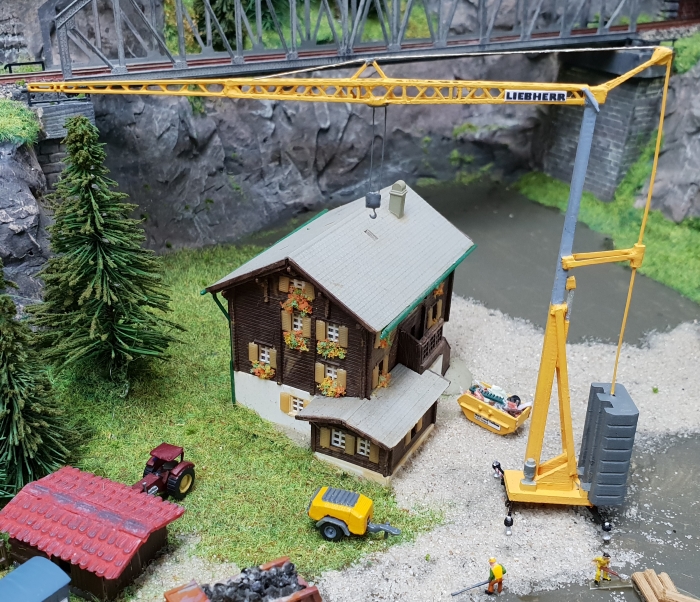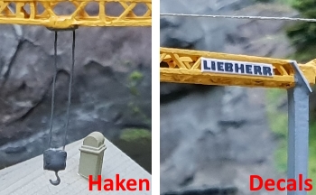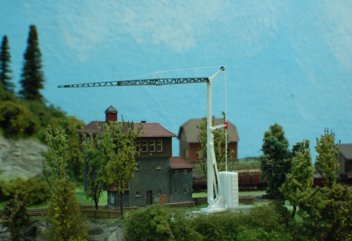 Evergreen Profile vervollständigen dann das Modell und frisch lackiert mit selbstgefertigten Decals kommt der Kran einsatzbereit zur Baustelle.