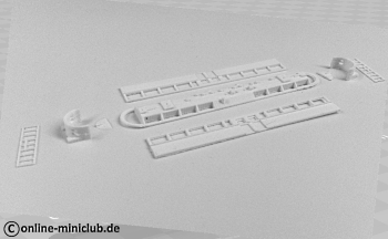 Hier sieht man das noch unlackierte Modell mit den Anbauteilen.