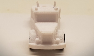 Auch ist es bei diesem Druck gelungen, die vorderen Kotflügel gleich mit anzumodellieren. Auch das Lüftungsgitter am Heck und die angedeuteten Rückleuchten kommen gut zur Geltung.