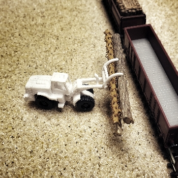 Zu Beginn der Bastelzeit bekam ich gleich wieder die Gelegenheit, etwas neues zu entwickeln. Diesmal sollte es ein Timberloader werden. Ein Z-Freund aus Schweden erläuterte mir, dass in dem durch große Waldgebiete geprägten Land der Einsatz dieser großen Radlader üblich ist und sich solch ein Modell bei der Holzverladung am Gütergleis gut machen würde.
