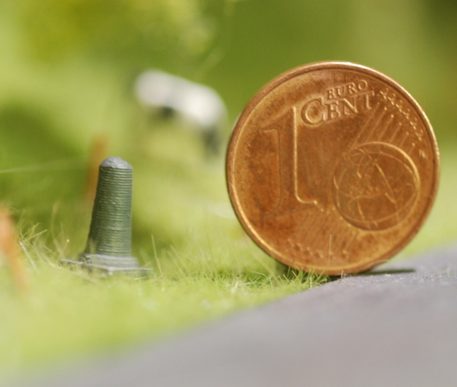 Nachdem ich kürzlich noch eine Spezialanfertigung eines Ladekrans für Jan Tappenbeck von den Eisenbahnfreunden Bad Schwartau angefertigt habe ( Foto weiter oben) fragte mich Jan kurz vor der Ausstellung im Januar, ob ich nicht für sein Diorama einen "Meilenstein" drucken kann. Ich sagte zu und das Ergebnis sieht man auf den Fotos. Gut zu erkennen sind zwar die einzelnen Schichten ( o,1 mm), aber insgesamt gelang es, das Modell fast maßstäblich zu drucken. Bei der Umsetzung muss man echt Kompromisse machen - die "großen" Meilensteine von ca.9 mm Höhe gehen noch einigermassen zu drucken. Bei den "kleinen" mit nur knappen 4,5 mm war es schon an der Grenze der Darstellbarkeit. Das passt dann als Pylone in einem HO Diorama vielleicht.....