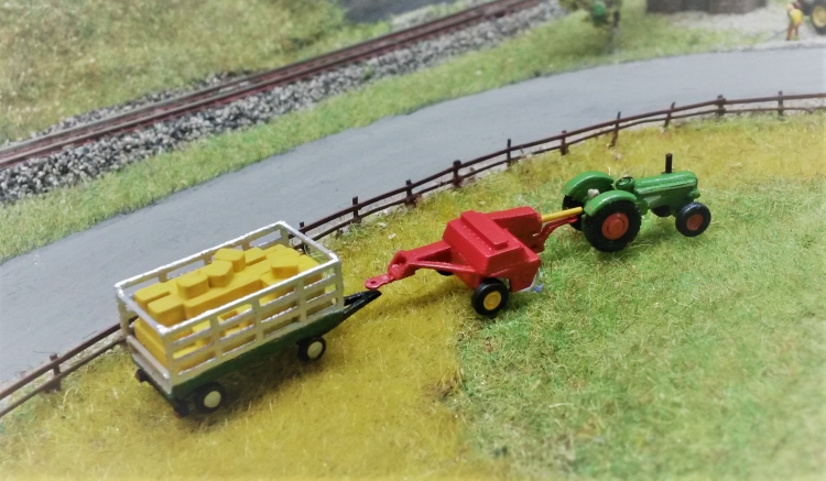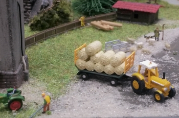 Ich finde, die Presse passt prima hinter einen "Fendt" Trecker. Was noch fehlt, ist eine filigraner Auswurf am Heck. Das ließ sich nicht im 3-D-Druck realisieren, Schade.