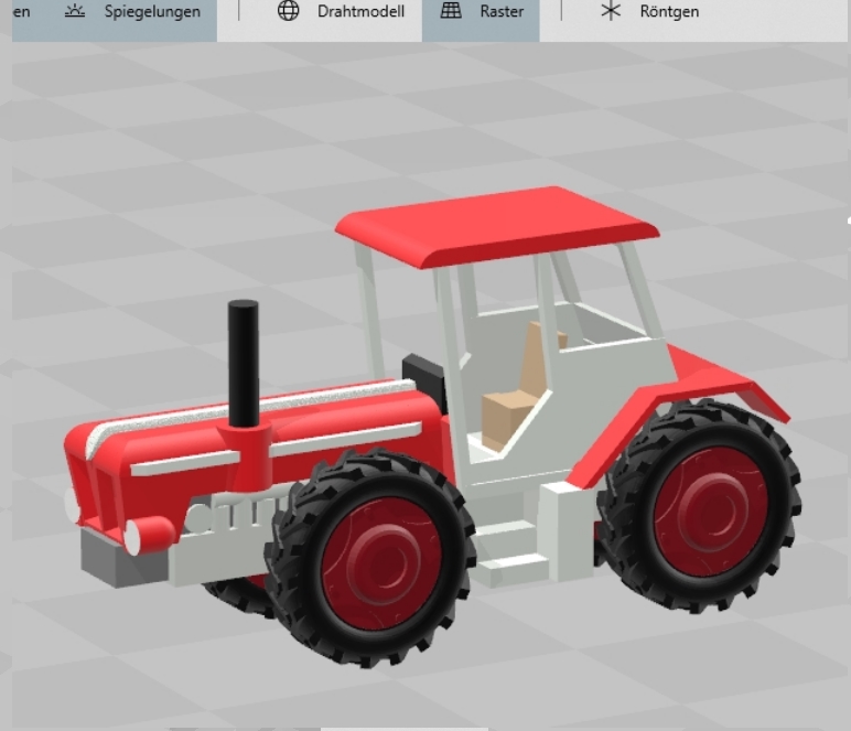 Als Vorlage habe ich einen Deutz D25 genommen und die Originalmaße digital umgesetzt. Das Modell ist sehr klein geworden und ein Testausdruck ist nur mäßig gelungen. Die Details am Motorblock sind etwas zu fein und ich habe auch Schwierigkeiten, passende Räder zu finden.