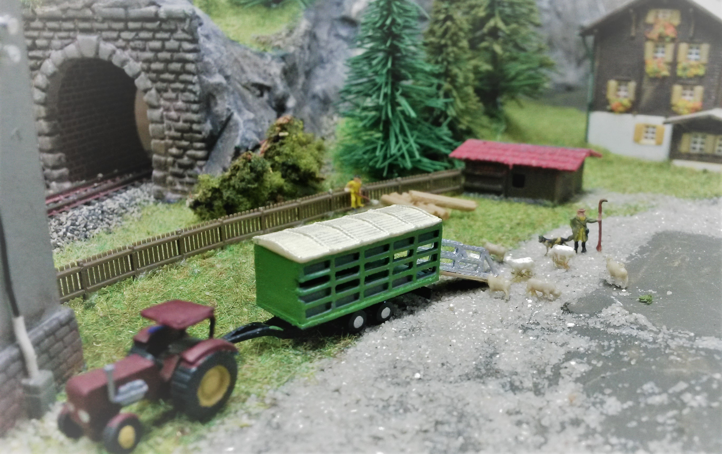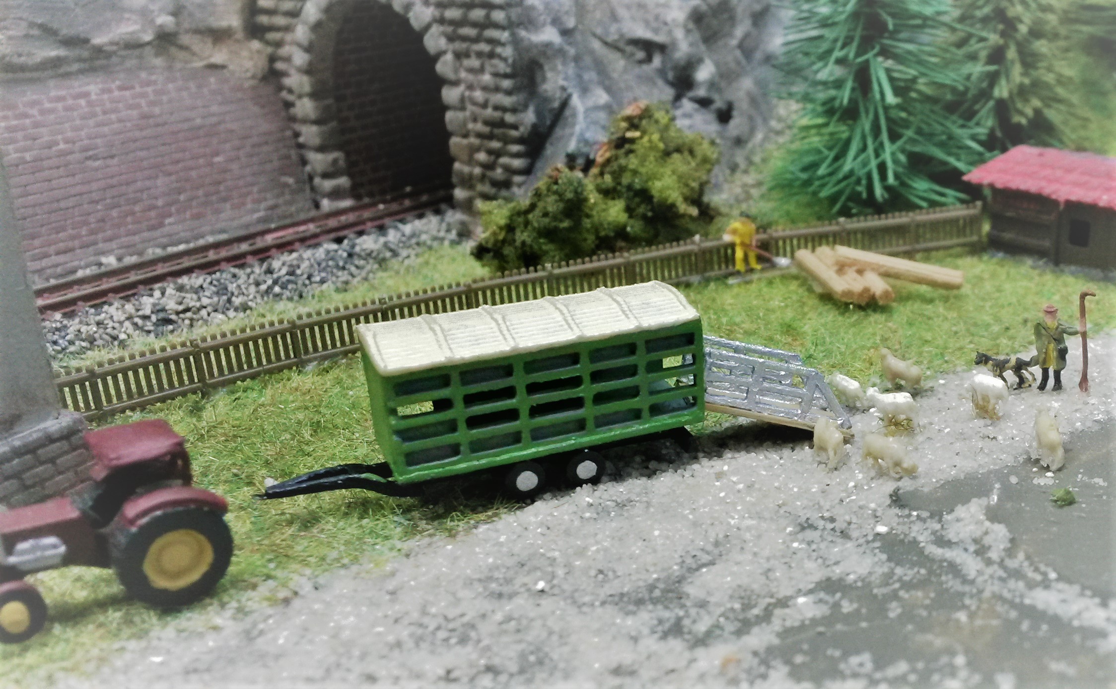 Naja, die Flächen habe ich nicht so hin bekommen, aber so siehts auch nicht schlecht aus. Damit die Tiere auch auf den Hänger kommen, musste ein kleiner Laufsteg her, das war dann aber ziemlich einfach ...