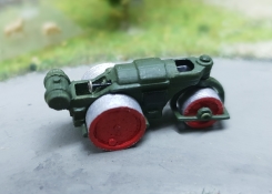 Die Räder sind hier noch einzeln angeklebt und angedeutete Achsen auch. Eine ganz schöne Fummelei. Ich habe das Modell aber digital schon geändert, so dass ich die Modelle "im Kopfstand" sozusagen komplett drucken kann. Allerdings nur die ohne Dachaufbauten. Als Letztes Modell in dieser Reihe habe ich den Samba natürlich auch druckfähig gestaltet.