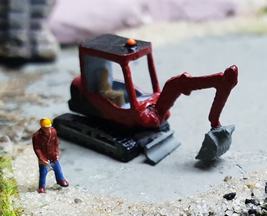 Ich habe im 5. Versuch einen CAT Kettenbagger als Vorbild genommen und die Maße in 1:220 umgesetzt. Herausgekommen ist ein wunderschöner Kettenbagger, der auf der Baustelle einen sehr guten Eindruck hinterlässt.