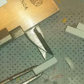 Spanten brauchte ich nicht montieren, da die Fläche relativ klein ist. Dann wieder das Alugewebe angetackert und die spätere Form auch schon mal grob vorgegeben.
