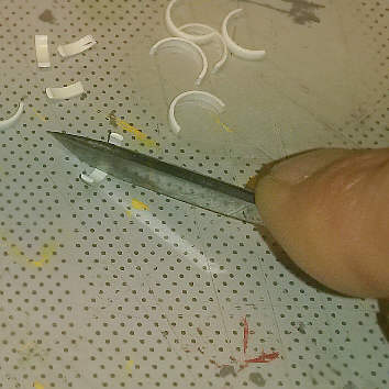 ausgehärteten halben Ringe werden ausgeschnitten.