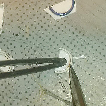 geklebt, die mit einem 0,8 mm Bohrer per Hand gebohrt