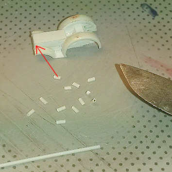 durchgesteckt und die Vorderräder angeklebt. Sie