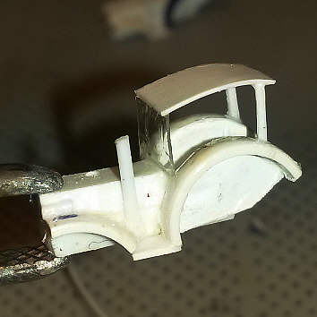 verklebte Fahrerkabine und angeklebtes Auspuffrohr auf