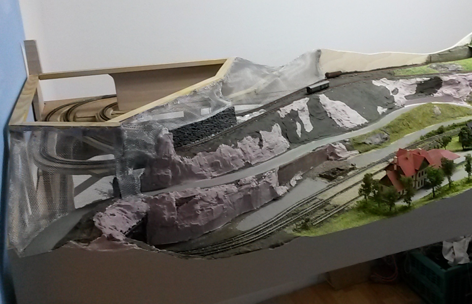 In dieser Fotoserie zeige ich die Fertigstellung des letzten Anlagenteils oberhalb meines Bahnhofs "Nieder-Ramstadt" auf der linken Anlagenseite.