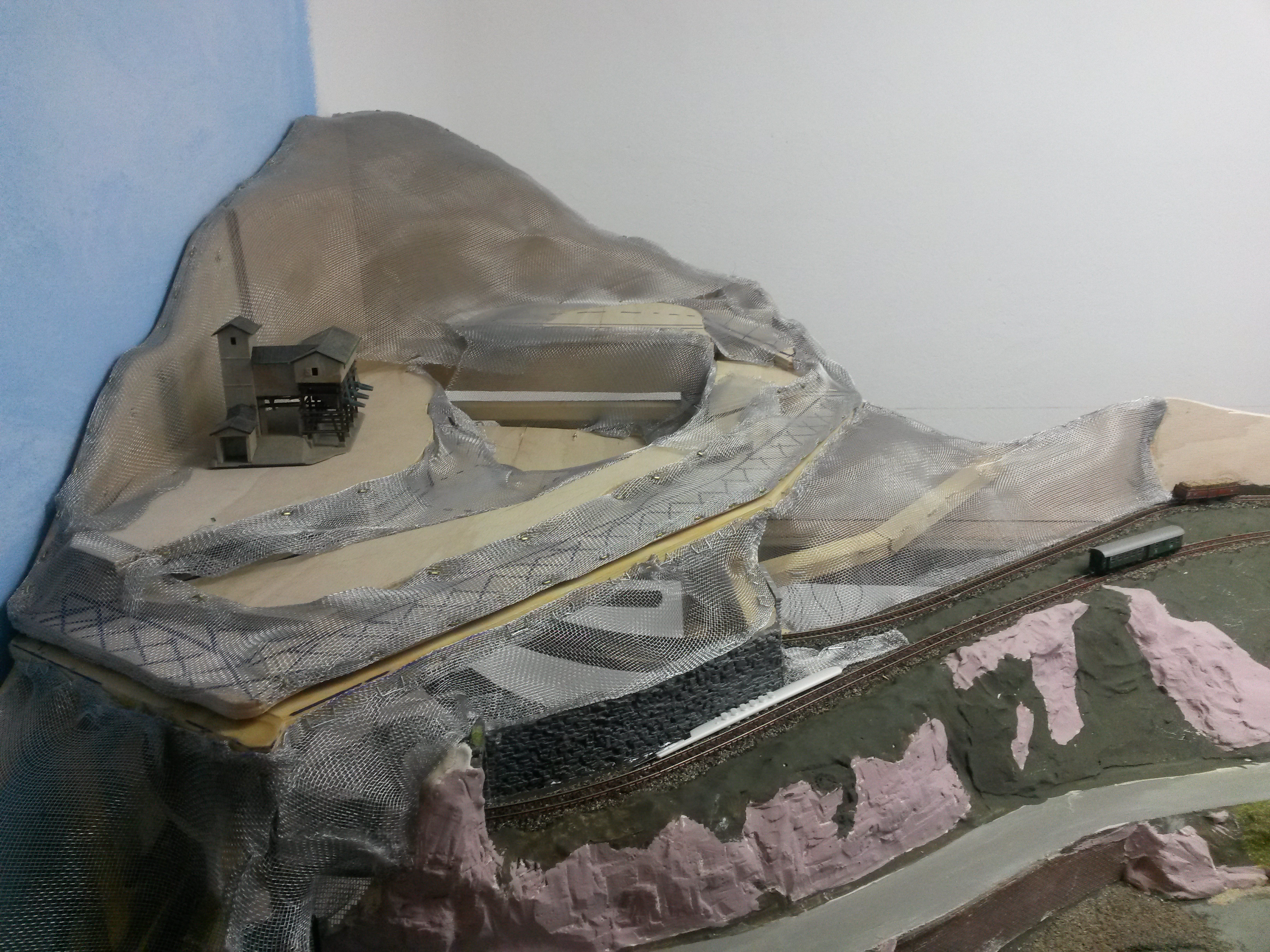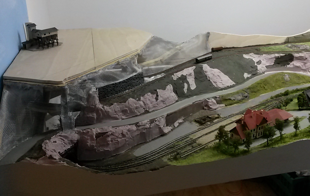 4) Anlagengestaltung : abnehmbares Geländeteil Steinbruch( Wird wegen Anlagenverkauf nicht weiter gebaut.)