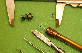 Mein Interesse war geweckt und nun liegen mir die Fotos seiner Feierabendbastelei vor. Er hat doch tatsächlich geschafft, wo ich mir die Zeigefinger gebrochen habe..... Der Trecker hat Scheinwerfer und........das Beste, auch