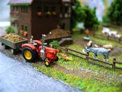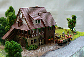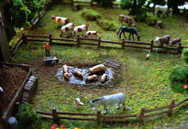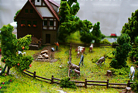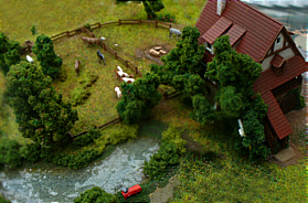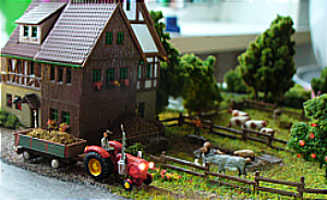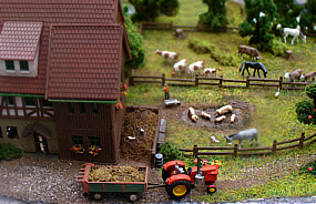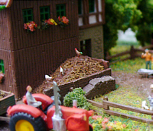 Dazu kann ich nur sagen ALLE ACHTUNG UDO, mein Kompliment, Diese Bastelei ist Dir vollends gelungen. Die Optik ist perfekt und auf deinem Anlagenmodul kommt es bestens zur Geltung. Die Details, sei es der Hahn auf dem Mist , Pferdekoppel, Bauer mit Karre oder die Schweinesuhle, alles spricht für sich. Die Fotos darf ich hier veröffentlichen.